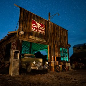 The southwest has many well preserved ghost towns because of their desolate locations and arid climates. Many prosperous gold mining towns in the 19th century had steam train service to carry workers, equipment, and supplies to their remote locations. When I visit, I imagine what it may have felt like living in this frontier in its heyday. I chose this composition to feature the old supply truck and railway water tower. The jagged mountains convey the ruggedness of the environment. The cold blue sky emphasizes the expansiveness of this location. It complements the warmer colors of the main subjects.